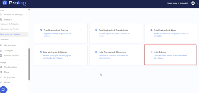 No Prolog WebEstoqueMovimento de ProdutosListar Estoque.
