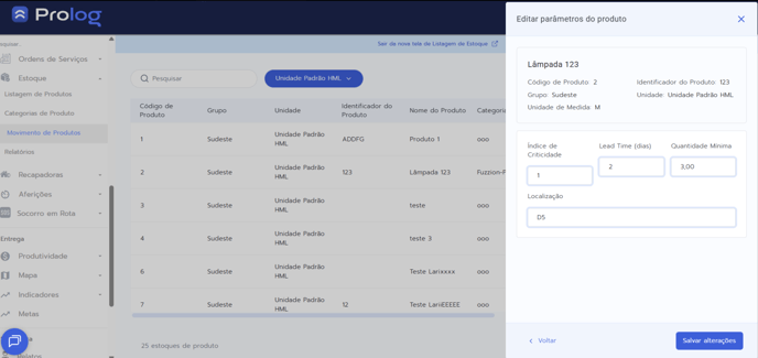 🗒️ Atualização das Telas de Estoque no Prolog Web