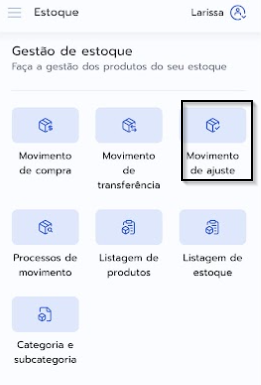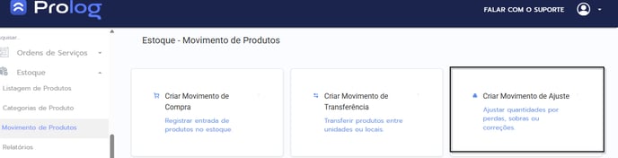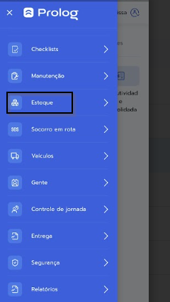 1. No menu do Prolog APP, escolha a opção Estoque > Movimento de Ajuste 📱