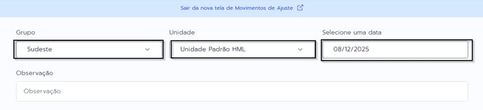 2. Na tela abaixo, confirme o grupo e unidade que será realizado o ajuste e selecione a data.