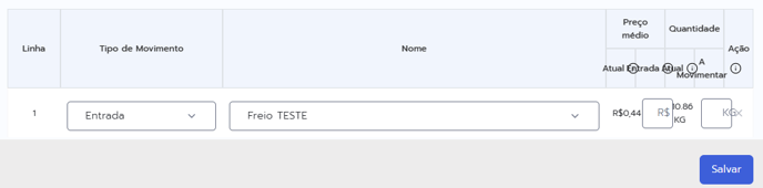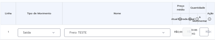 Caso seja movimentação de saída, o campo entrada será preenchido automaticamente com o valor atual.