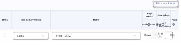 4. Para ajustar mais de um produto por vez, clique em Adicionar Linha.