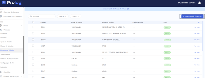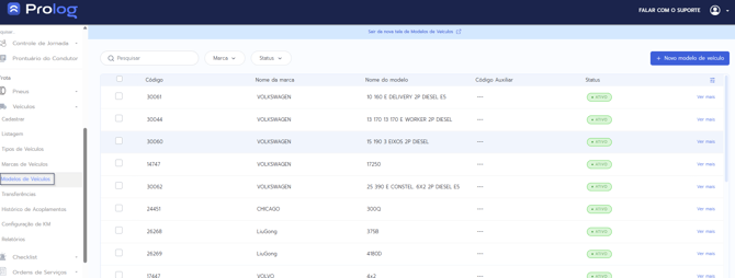 1 - No menu do PrologWeb, escolha a opção Veículos > Modelos de veículos.