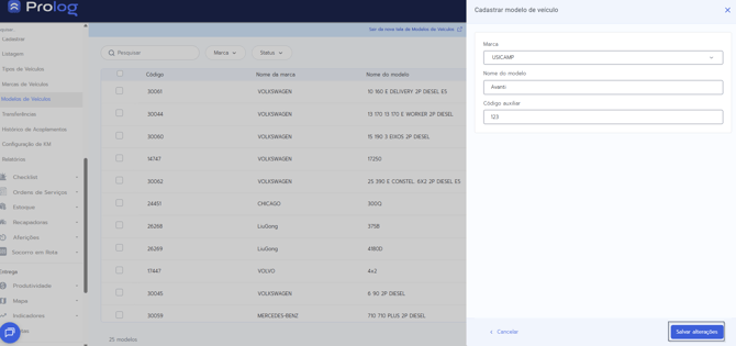 O cadastro de um novo Modelo de Veículo é realizado apenas através do PrologWeb.
