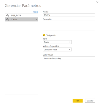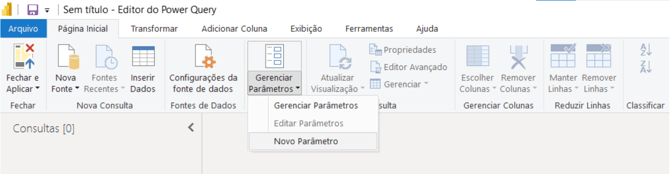 Iremos configurar dois parâmetros para utilizar nas nossas queries posteriormente. Para isso, acesse o menu Gerenciar Parâmetros > Novo Parâmetro.