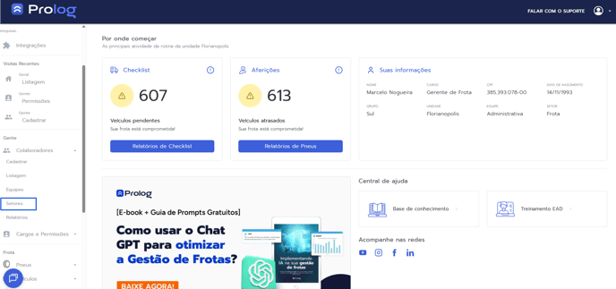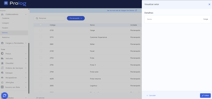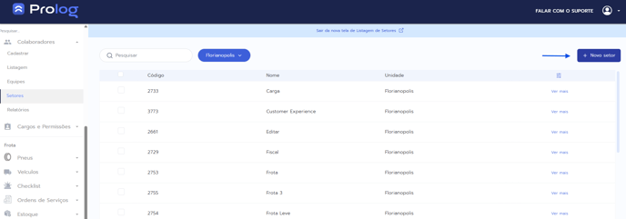 - No menu do Prolog Web, selecione: Colaboradores > Setores