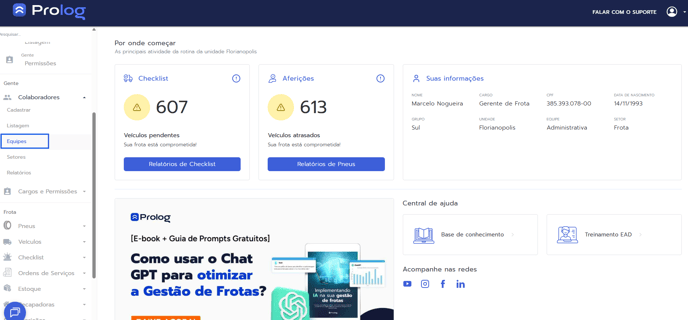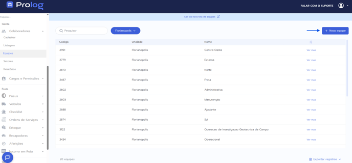 - No menu do Prolog Web, selecione: Colaboradores > Equipe