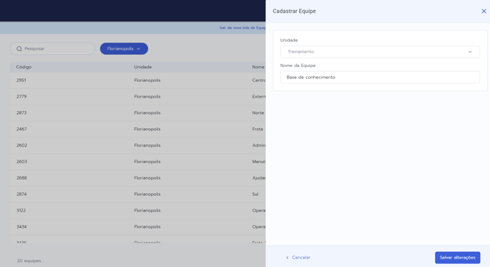 - Selecione a unidade e insira o nome do setor. Clique em Salvar alterações