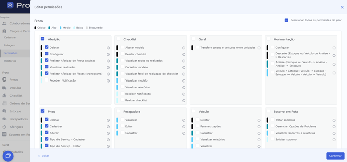 Importante: funcionalidades de módulos não contratados não poderão ser selecionadas.