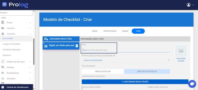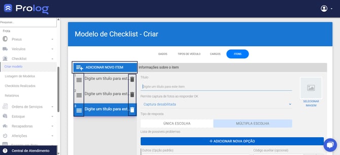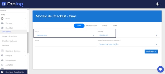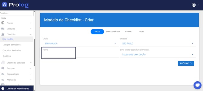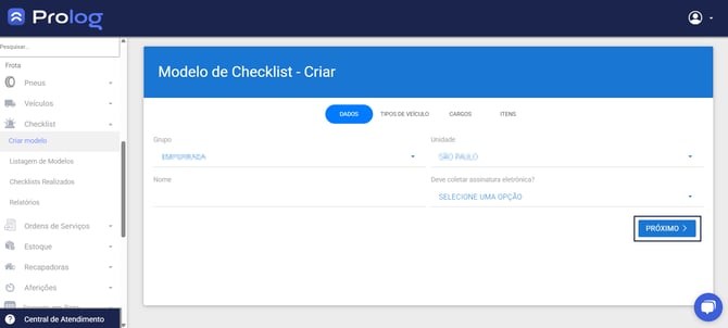 A criação de um novo modelo de checklist deve ser realizada via Prolog Web, confira nosso passo a passo abaixo!