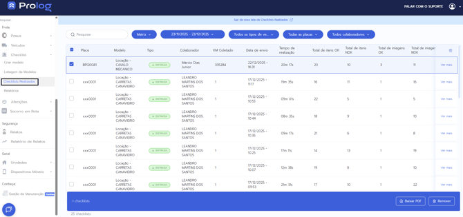 - No menu lateral, acesse: Checklist > Checklists Realizados.