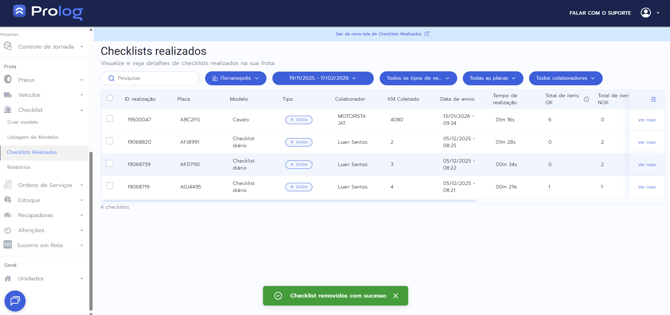 - Consulte seu gestor antes de excluir checklists com mais de 24 horas de registro