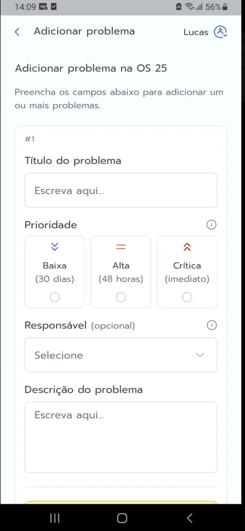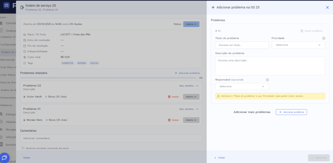 Importante! Somente usuários que possuem o módulo de Manutenção contratado podem adicionar problemas em uma O.S.