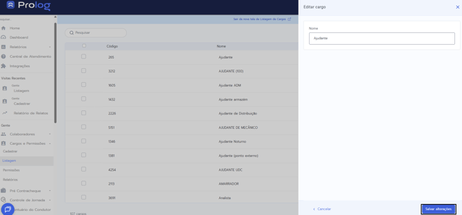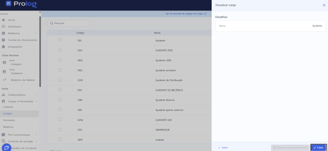 Os cargos cadastrados ficam visíveis para toda a sua empresa e o Prolog impedirá o salvamento de nomes iguais.
