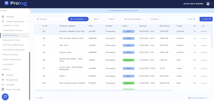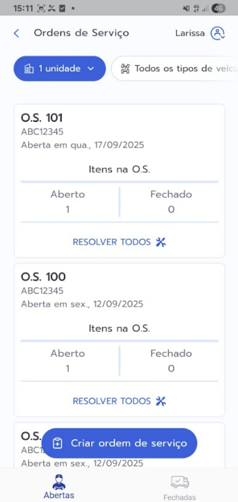 - Acesse a funcionalidade Ordem de Serviço ou Manutenção por Placa.