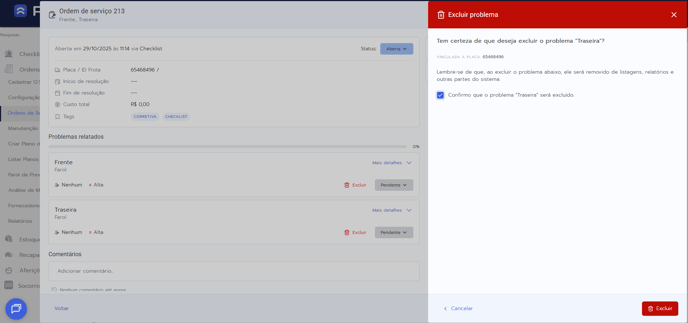 Importante: Não será possível reverter o processo de exclusão de item ou ordem de serviço.