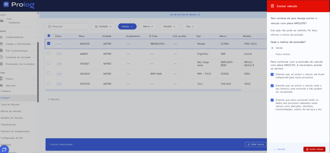Você consegue acessar a ferramenta para deletar os veículos apenas no Prolog Web.