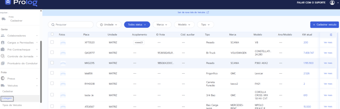 1. No menu do PrologWeb, escolha a opção Veículos > Listagem.