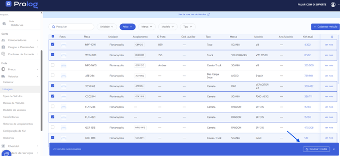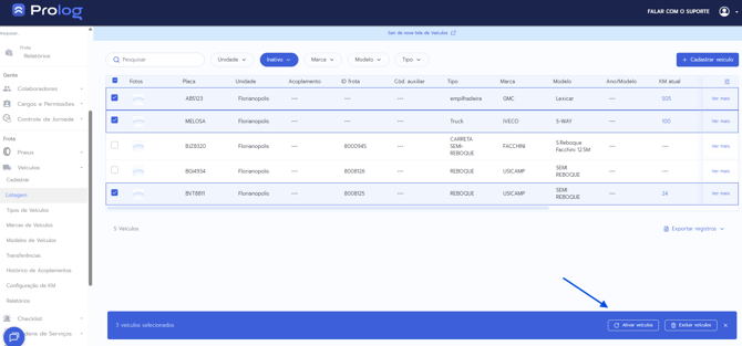 Como Inativar e Ativar Veículos no Prolog Web