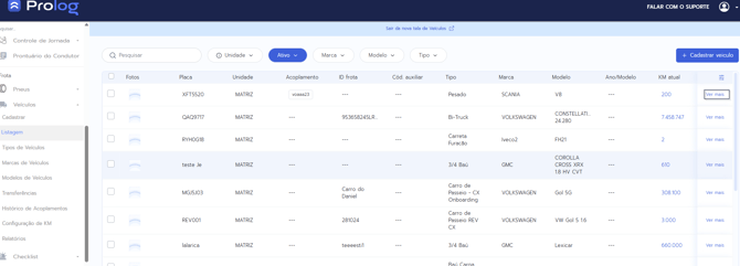 - Clique no botão "Ver mais" ao lado do registro do veículo.