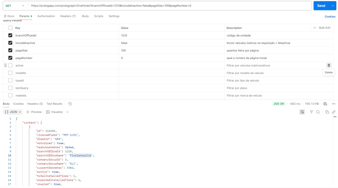 filtroactive: Buscar por veículos inativos ou ativos -"TRUE" ou "FALSE".