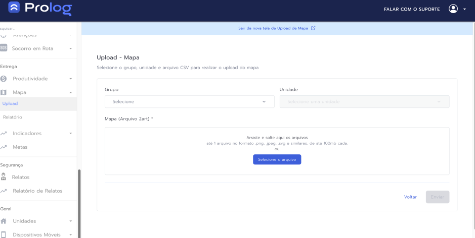 Novas telas: Upload de Mapa e Cadastro de Metas