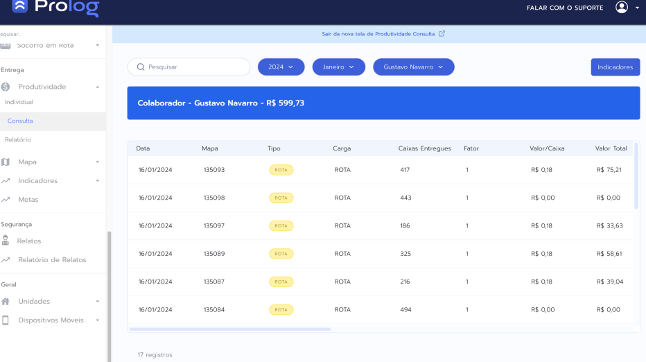 Essas telas foram atualizadas para um novo layout, trazendo uma interface mais moderna e alinhada às demais telas já atualizadas do Prolog.