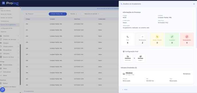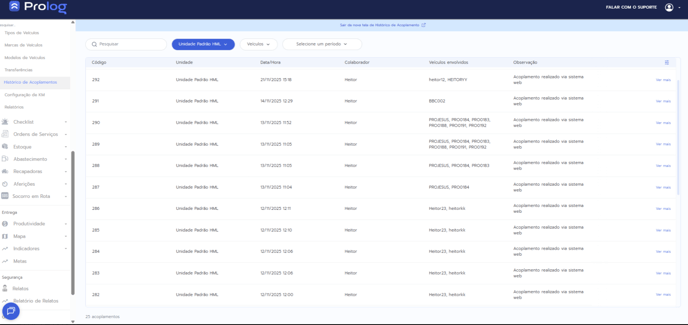 Nova versão da tela de Histórico de Acoplamentos no Prolog Web! 🎉 A tela foi atualizada para o novo layout, trazendo uma visualização mais moderna, clara e alinhada ao padrão atual do sistema.