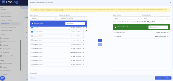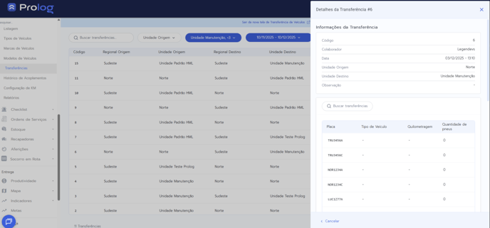 Atualização da Tela de Transferência de Veículos no Prolog Web