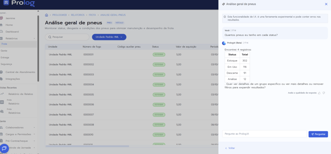 Agora os relatórios do Prolog Web contam com um Chat de IA integrado, permitindo que você faça perguntas sobre os dados exibidos e obtenha respostas rápidas e precisas sem precisar exportar ou interpretar manualmente as informações do relatório.