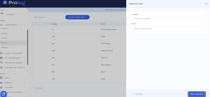 - Selecione a unidade e insira o nome do setor. Clique em Salvar alterações ✅