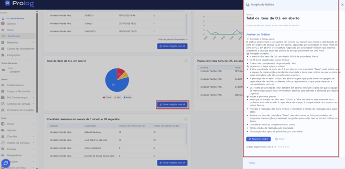 Geração de Insights com IA nos Dashboards do Prolog Web