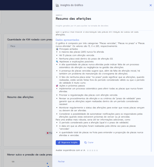 Agora, os gráficos e tabelas dos Dashboards do Prolog Web passam a contar com análises automáticas geradas por IA, tornando a leitura dos dados muito mais rápida, clara e acionável.