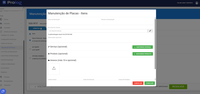 A finalidade da manutenção de placas é possibilitar que você visualize as ordens de serviço que estão abertas ou fechadas, associadas a cada placa específica.