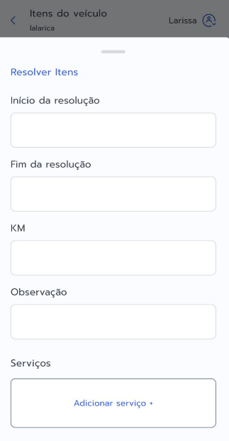 Caso a opção resolver todos os itens estiver marcada, todas as informações inseridas serão aplicadas para todas as ordens de serviço.