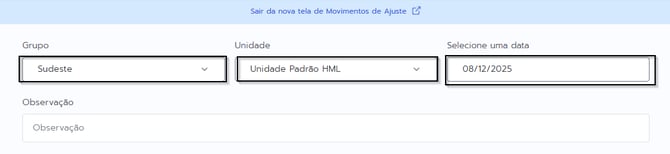 2. Na tela abaixo, confirme o grupo e unidade que será realizada a movimentação e selecione a data.