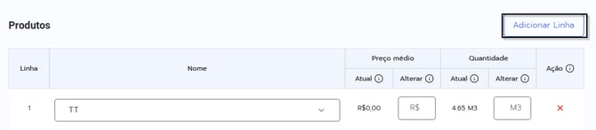 - Clique em Adicionar Linha.