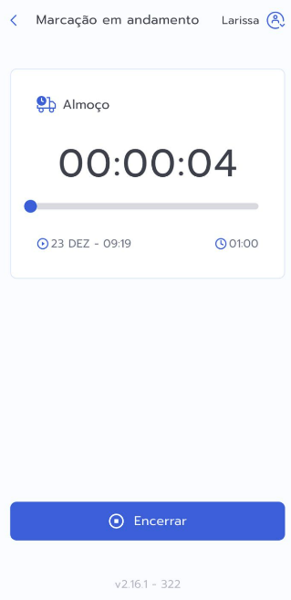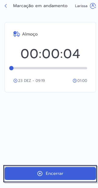 5. Ao término do cumprimento do período, o colaborador deverá clicar no botão Encerrar.