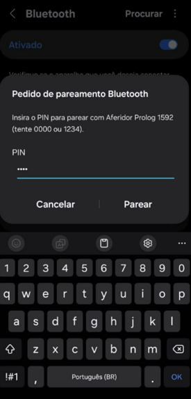 Confirme se o aferidor aparece como conectado nas configurações de Bluetooth do celular.