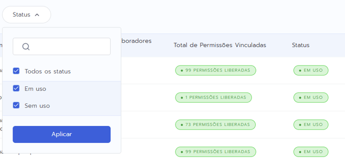 - Quantidade de permissões já vinculadas ao cargo.