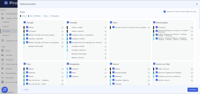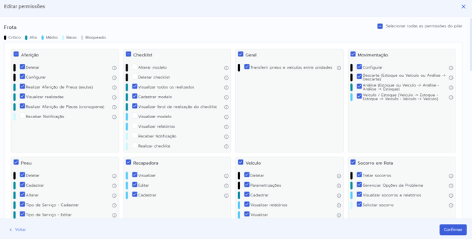 - Após selecionar todas as permissões desejadas, clique no botão “Confirmar”.