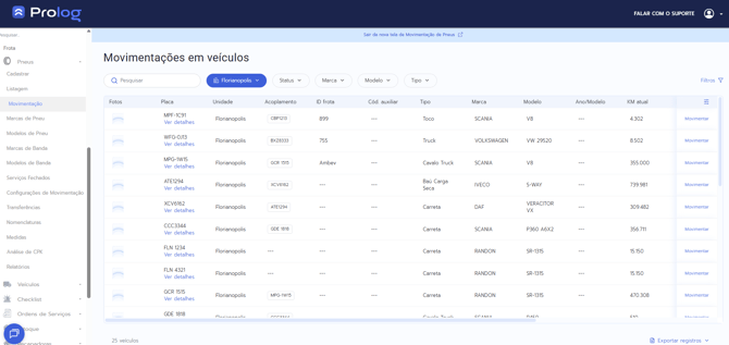 - No Prolog App, acesse o menu: Movimentação > Movimentações em Veículos.