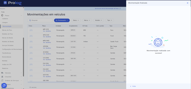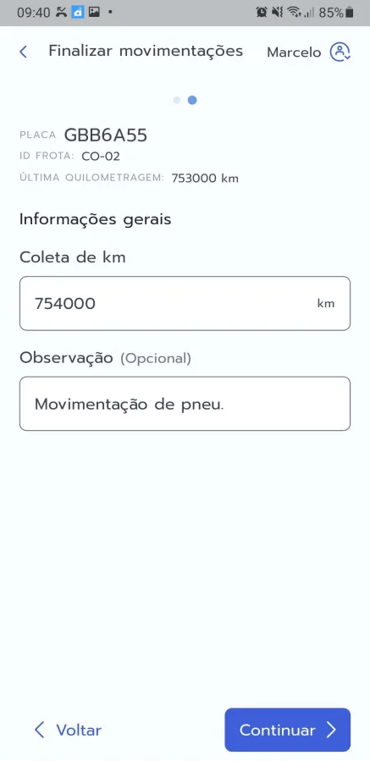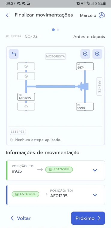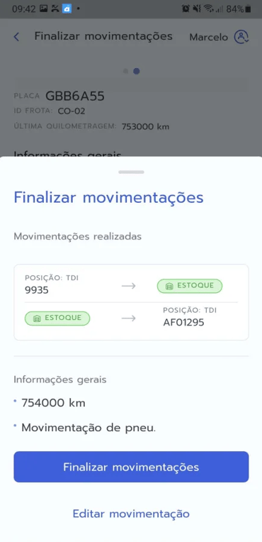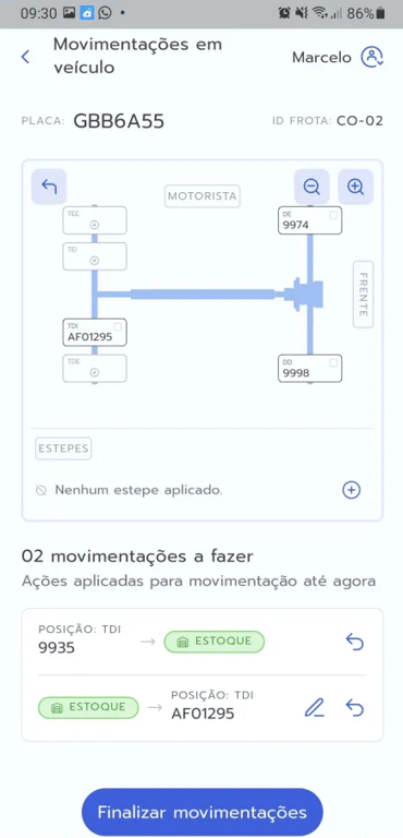 - Após selecionar todos os pneus, toque em "Finalizar movimentações".