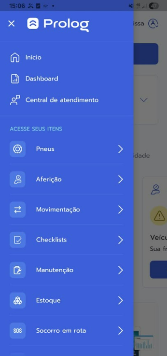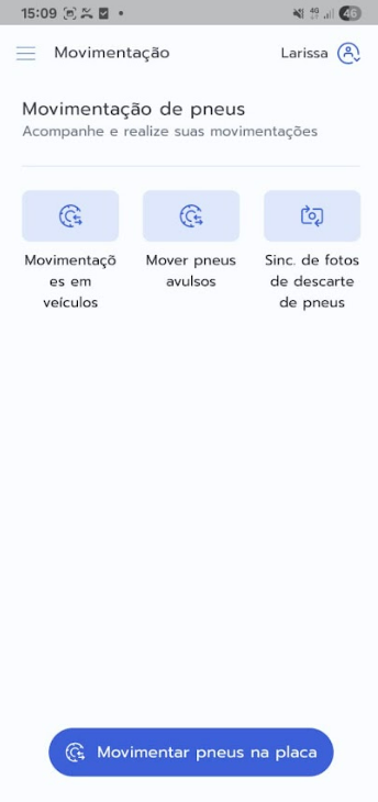 Atenção: Caso não apareça a opção Pneus ou Movimentações no seu menu, entre em contato com seu gestor para liberação de permissão.