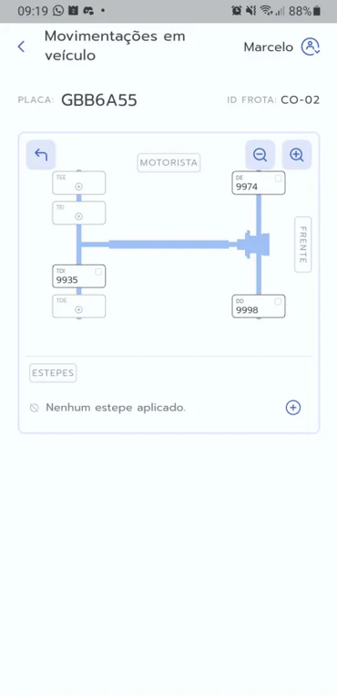Dica: Para movimentar pneus do veículo de volta para o estoque, basta clicar no pneu posicionado no diagrama e arrastá-lo até o campo de estoque.