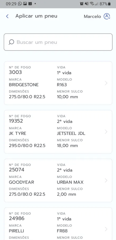 - Na listagem de pneus em estoque: