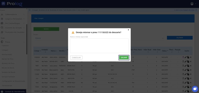 - Localize o pneu em descarte que deseja retornar para o estoque.