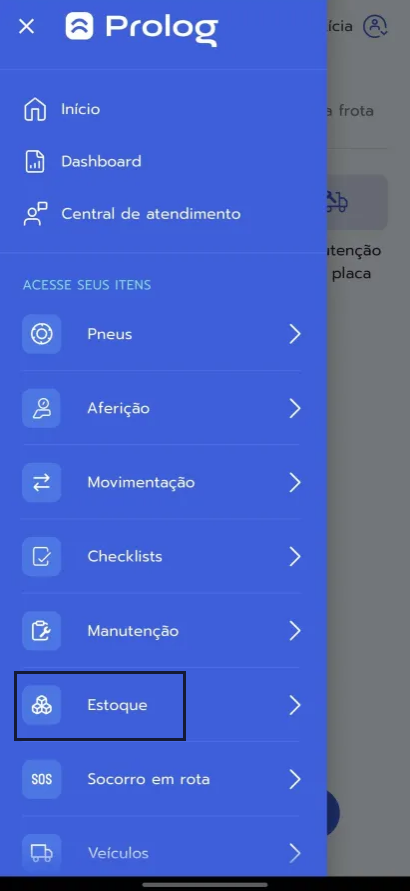 1. No menu do Prolog App, escolha a opção Estoque > Movimento de Compras.