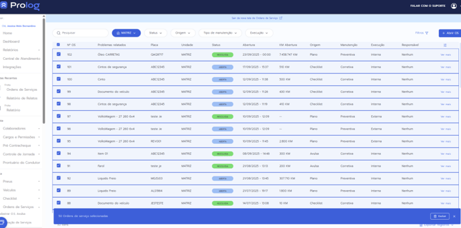 Novidades na tela de Ordens de Serviço do Prolog Web