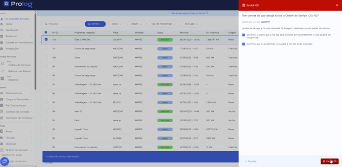 Agora é possível excluir Ordens de Serviço e Problemas tanto pela listagem (de forma individual ou em lote) quanto pela tela de visualização da O.S.